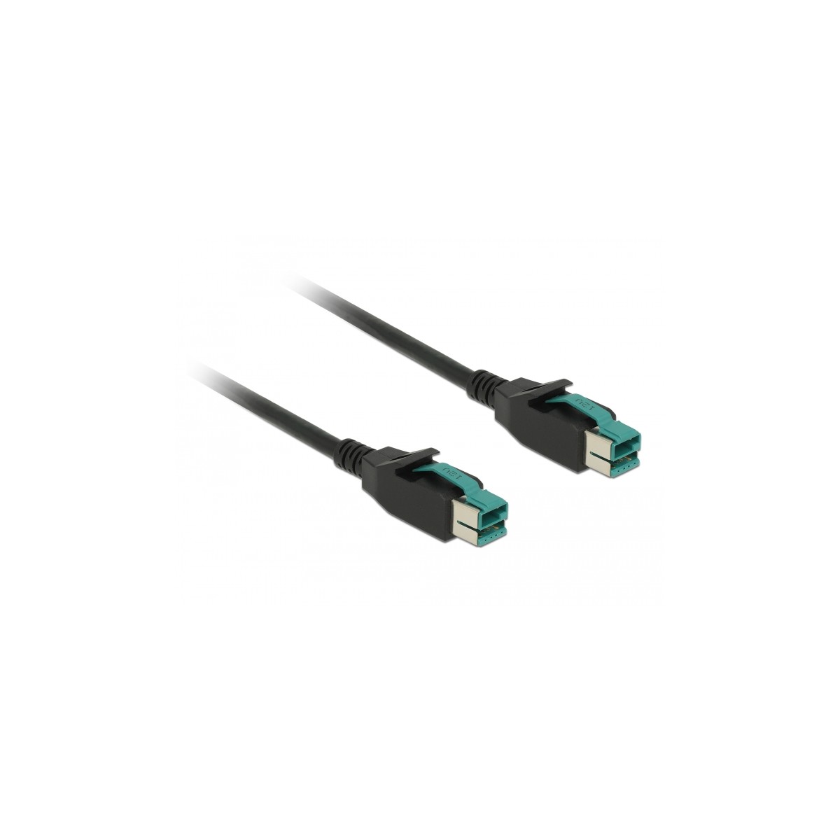 This PoweredUSB cable by Delock can be used to connect a device with PoweredUSB 12 V port to a PC or hub with PoweredUSB 12 V port. It is suitable for connecting various POS devices such as printers and terminals, e.g. by Epson, Honeywell or IBM. The cable is used both for data transmission and for power supply of the connected device.