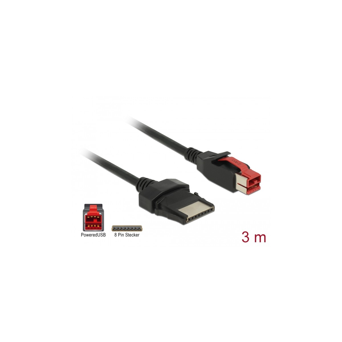 Delock PoweredUSB cable male 24 V > 8 pin male 3 m for POS printers and terminals