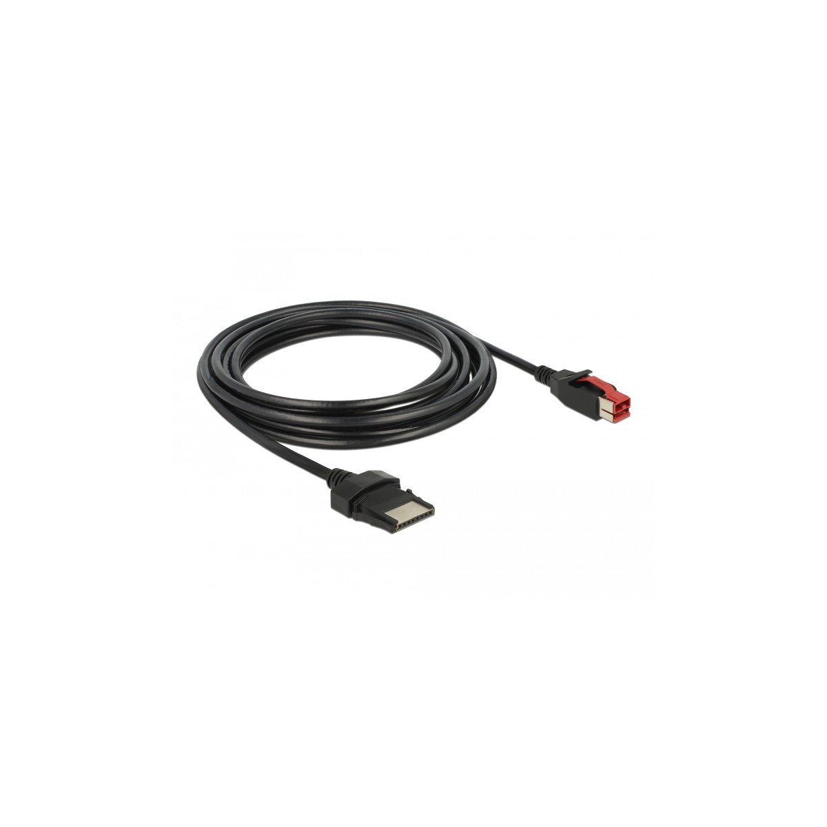This PoweredUSB cable by Delock can be used to connect a device with 8 pin port to a PC or hub with PoweredUSB 24 V port. It is suitable for connecting various POS devices such as printers and terminals, e.g. by Epson, IBM, Wincor or HP. The cable is used both for data transmission and for power supply of the coninected device.