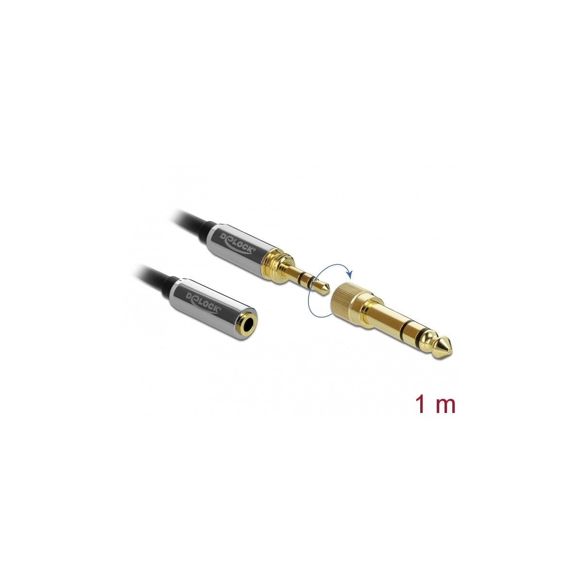 Delock Stereo Jack Extension Cable 3.5 mm 3 pin male to female with 6.35 mm screw adapter 1 m