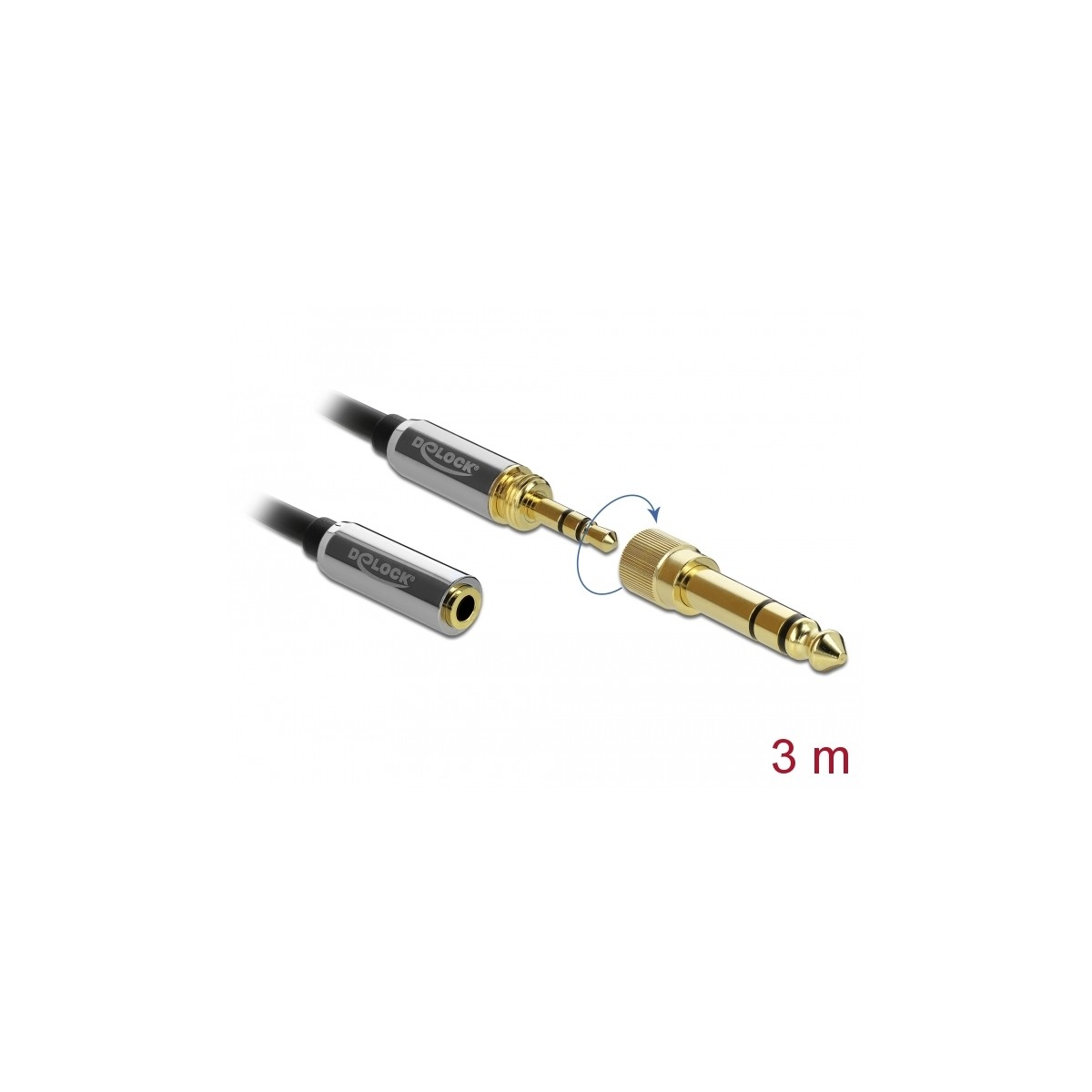 Delock Stereo Jack Extension Cable 3.5 mm 3 pin male to female with 6.35 mm screw adapter 3 m