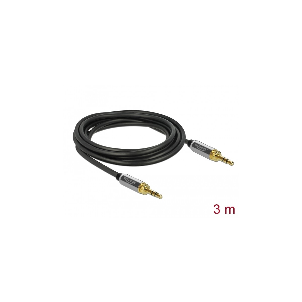 Delock Stereo Jack Cable 3.5 mm 3 pin male to male with screw adapter 3 m