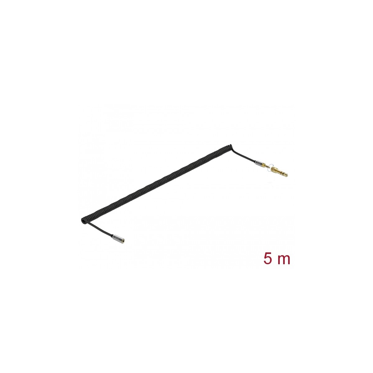 Delock Coiled Cable Extension 3.5 mm 3 pin Stereo Jack male to Stereo Jack female with 6.35 mm screw adapter 5 m
