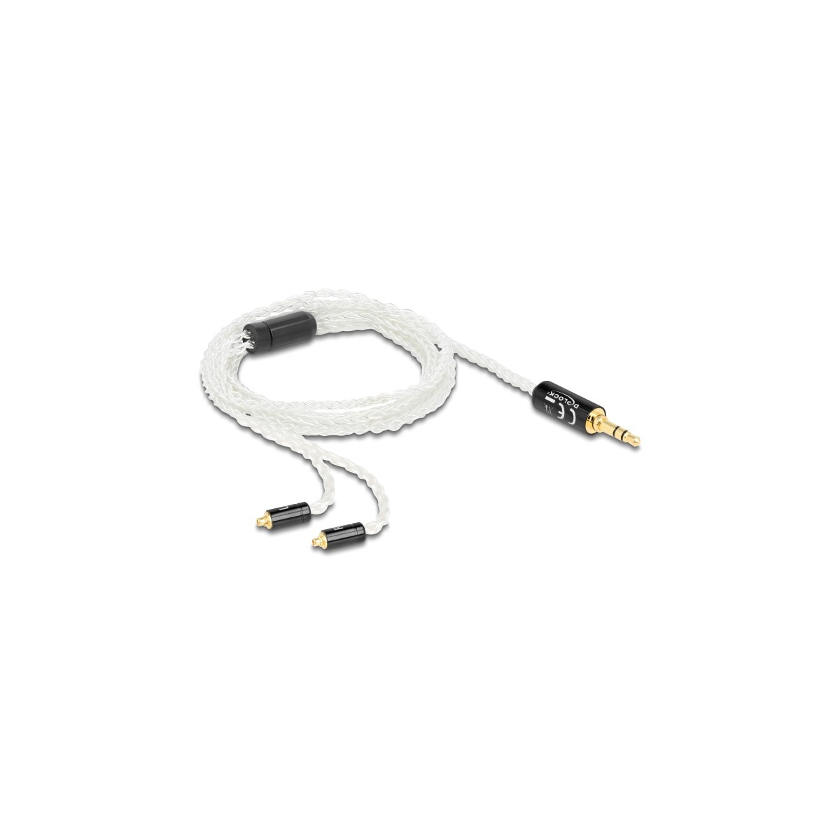 This audio cable by Delock enables the connection of e.g. a music-player to a headset with MMCX interface.