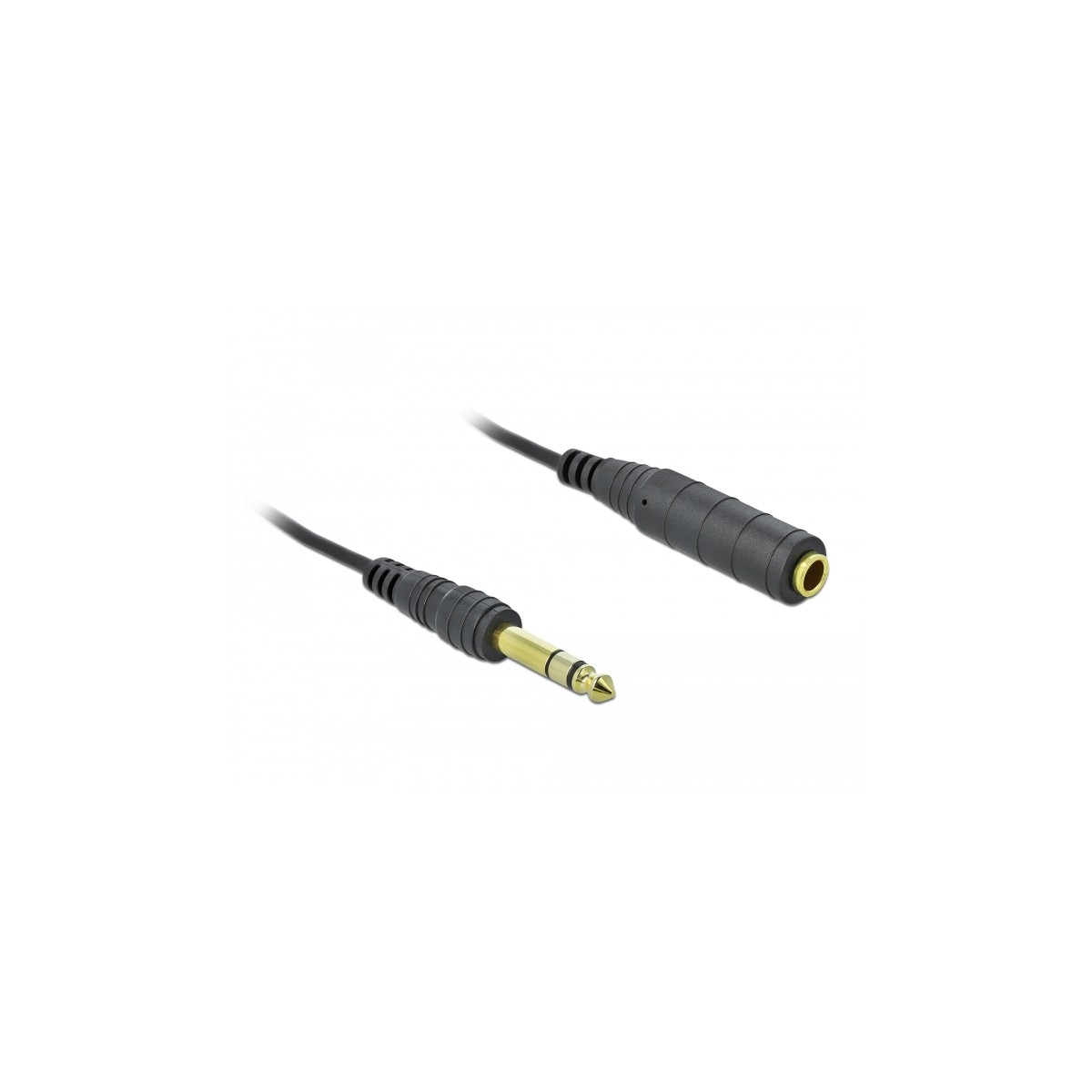 This stereo jack cable by Delock enables the extension of a 6.35 mm stereo jack connection. Due to its quality, it is especially suitable for connection to loudspeaker boxes.