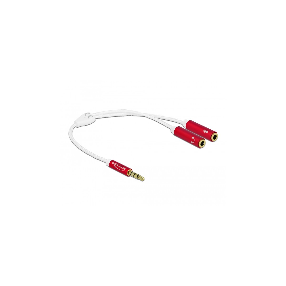 Delock Headset Adapter 1 x 3.5 mm 4 pin Stereo jack male to 2 x 3.5 mm 4 pin Stereo jack female with textile shielding 20 cm