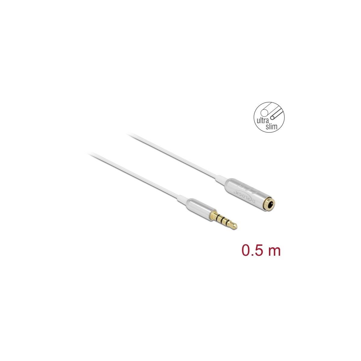 Delock Audio Extension Cable Stereo Jack 3.5 mm 4 pin male to female Ultra Slim 0.5 m white