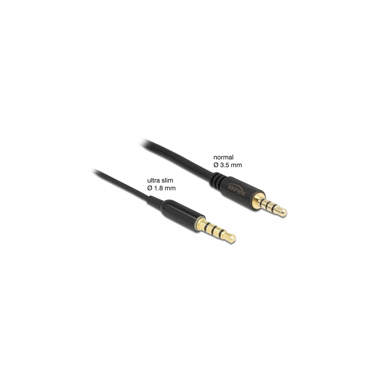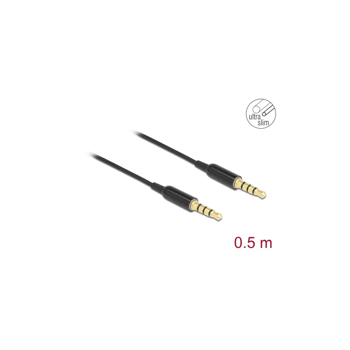 Delock Stereo Jack Cable 3.5 mm 4 pin male to male Ultra Slim 0.5 m black