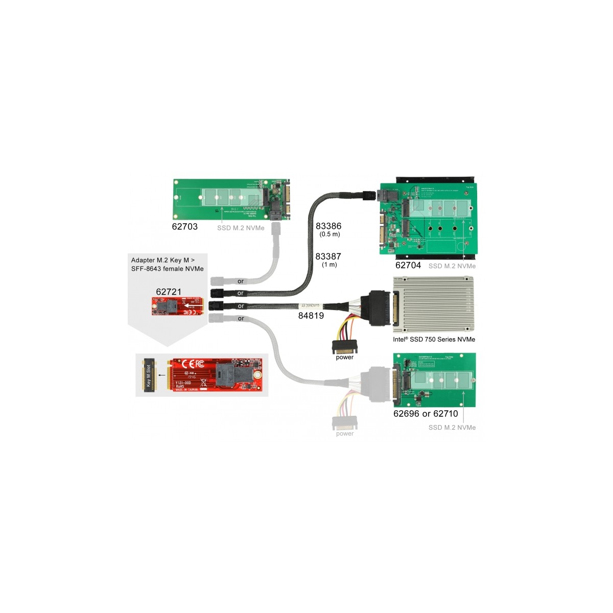 This Delock adapter enables the connection of a NVMe memory e.g. U.2 SSD via the SFF-8643 interface to a M.2 slot.