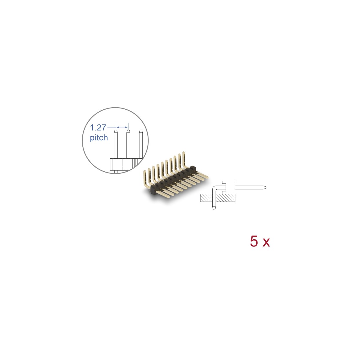Delock Pin header 10 pin, pitch 1.27 mm, 1-row, angled, 5 pieces