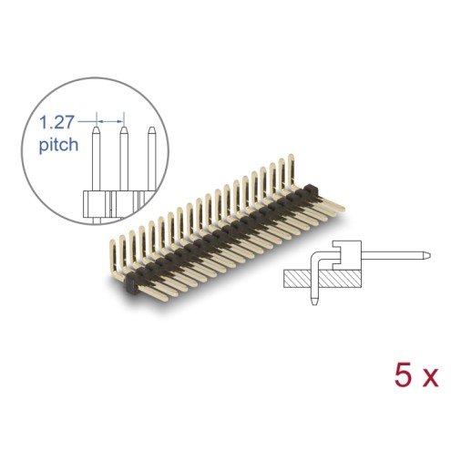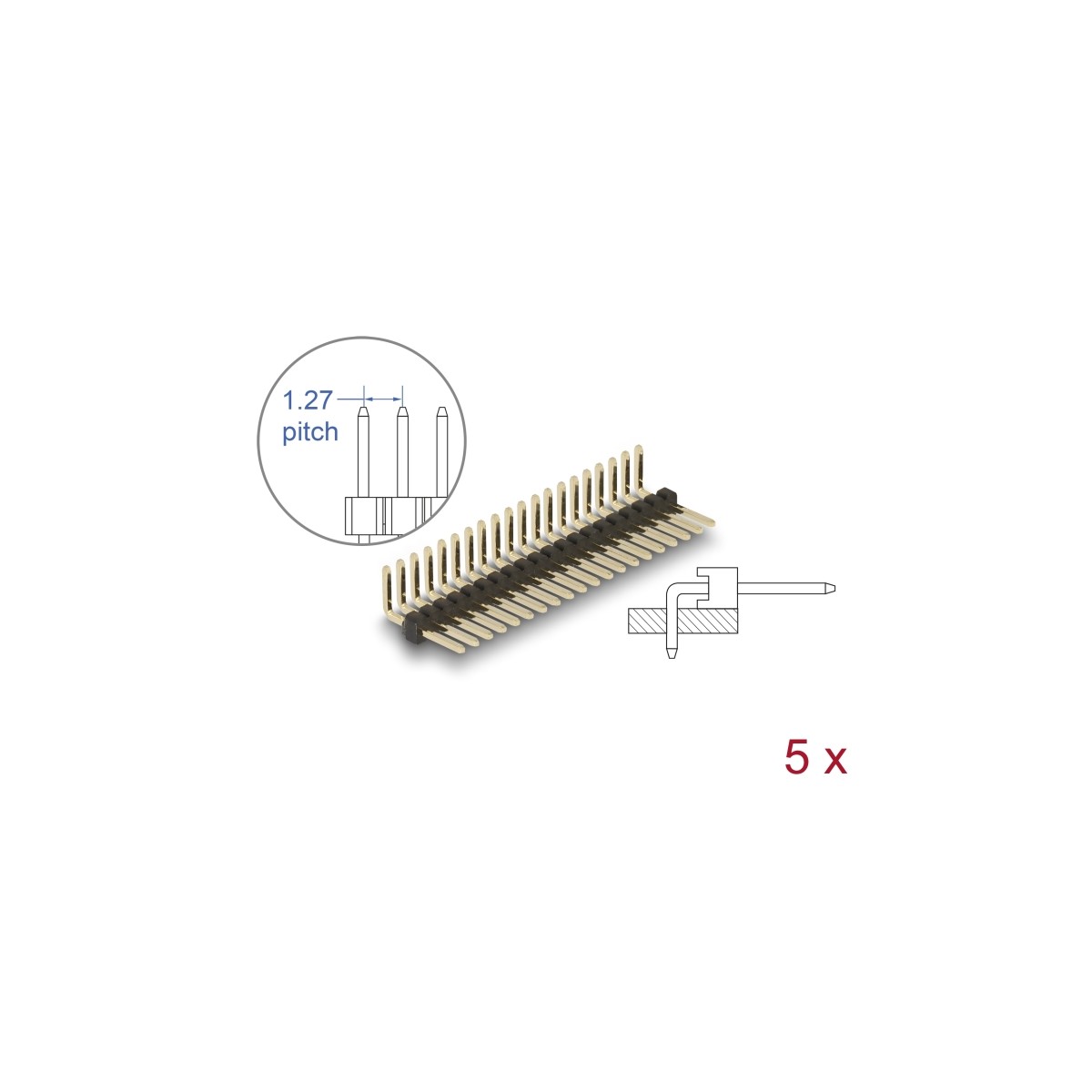Delock Pin header 20 pin, pitch 1.27 mm, 1-row, angled, 5 pieces