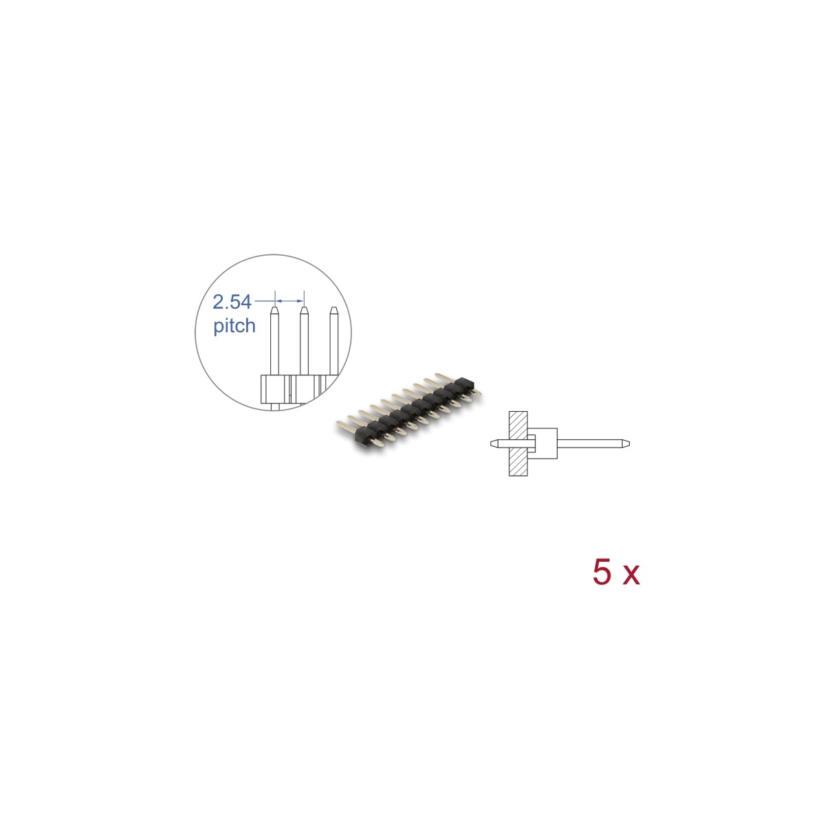 Delock Pin header 10 pin, pitch 2.54 mm, 1-row, straight, 5 pieces