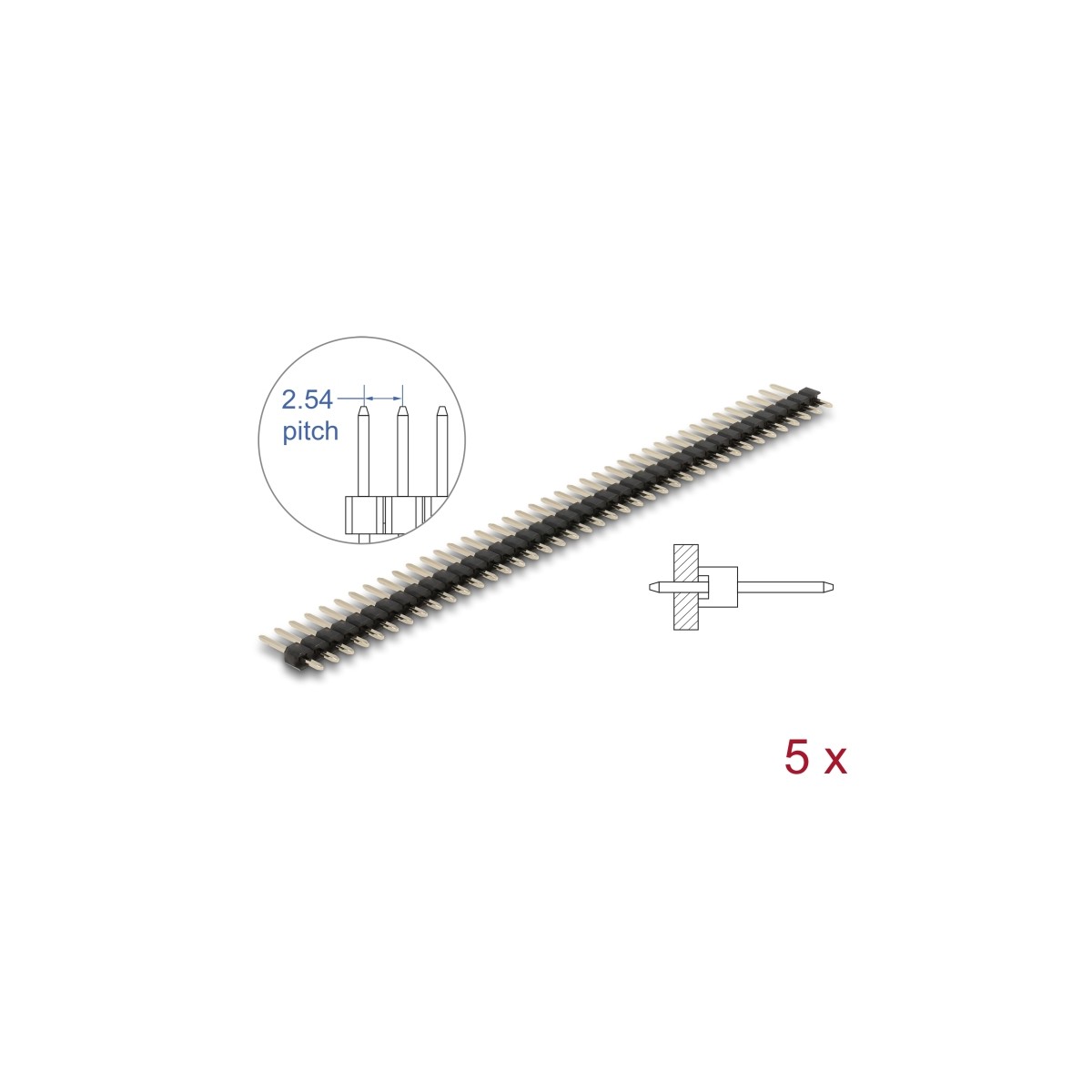 Delock Pin header 40 pin, pitch 2.54 mm, 1-row, straight, 5 pieces