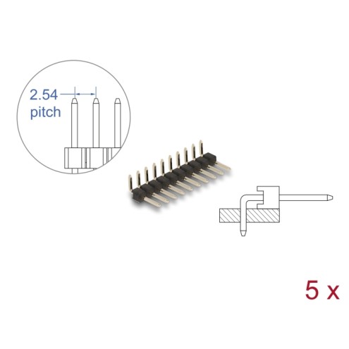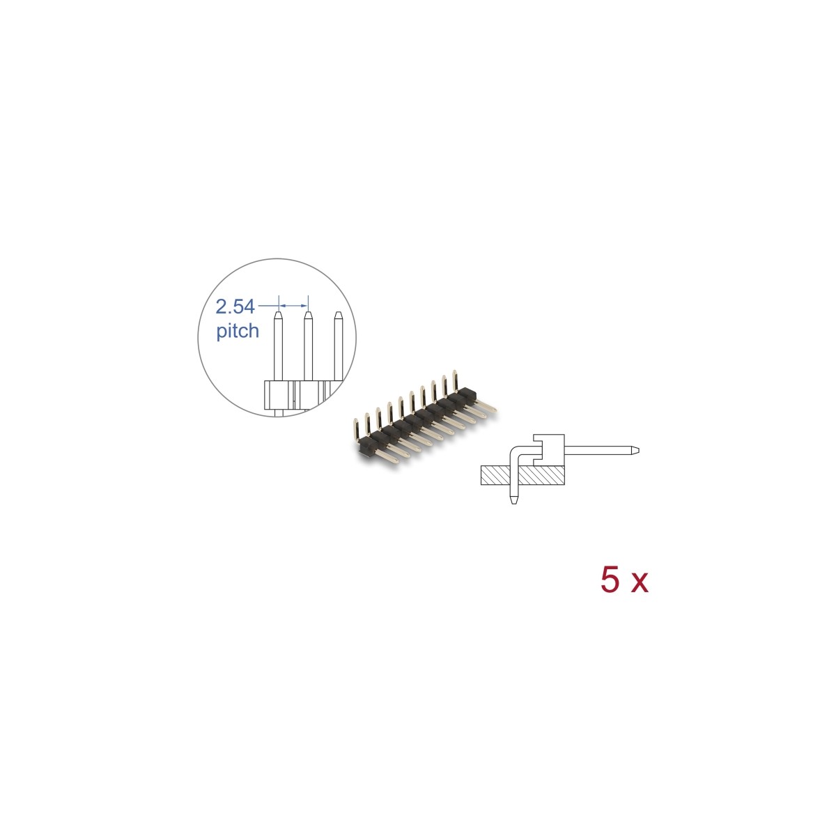 Delock Pin header 10 pin, pitch 2.54 mm, 1-row, angled, 5 pieces
