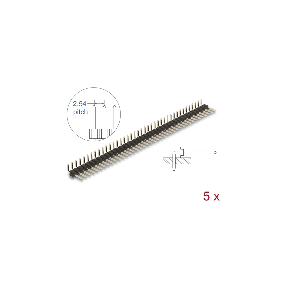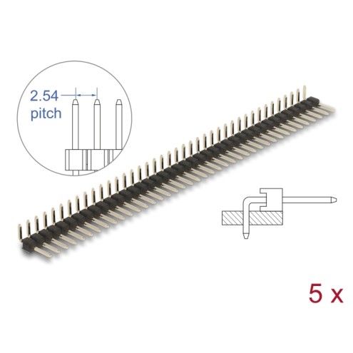 Delock Pin header 40 pin, pitch 2.54 mm, 1-row, angled, 5 pieces