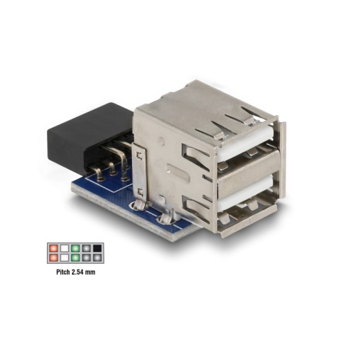 Delock USB pin header female > 2 x USB 2.0 female - up