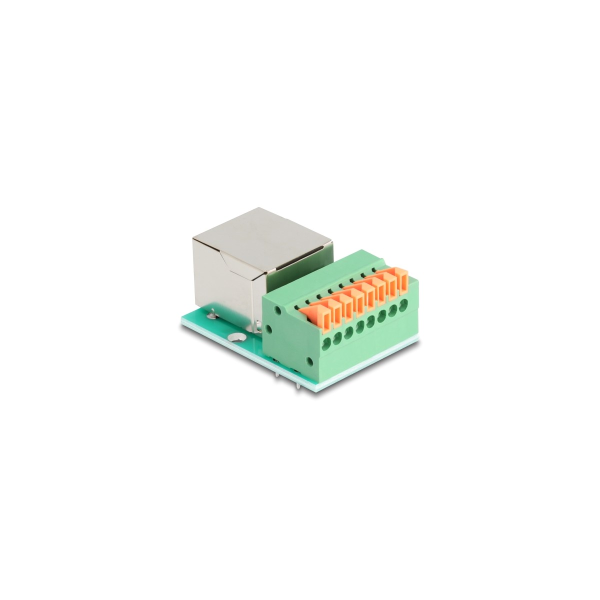 This adapter by Delock can be used to connect various network devices. Strands with stripped ends can be connected via the terminal block toolfree.