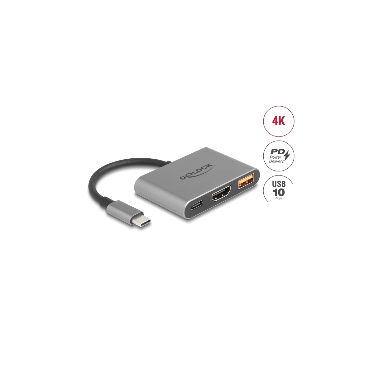 Delock USB Type-C™ Adapter to HDMI 4K 30 Hz with USB Type-A and USB Type-C™ PD 2.0 90 W