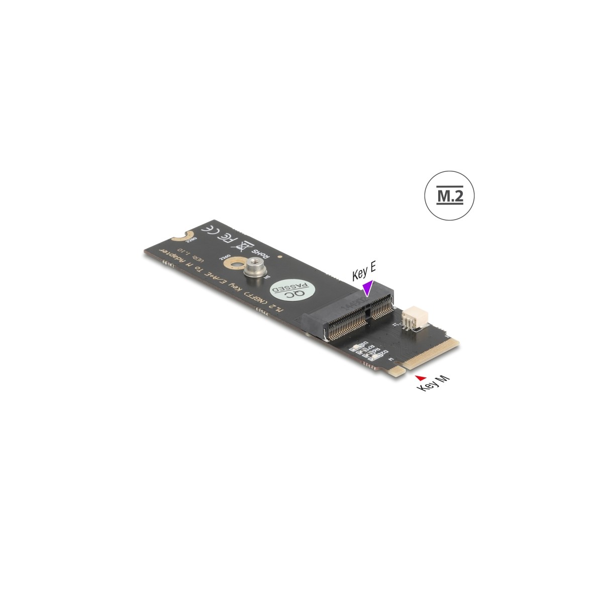 This converter by Delock converts the M.2 key M slot into a key E slot. It supports modules with USB and PCIe signal transfer.