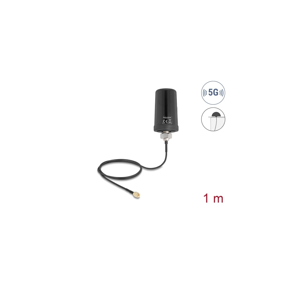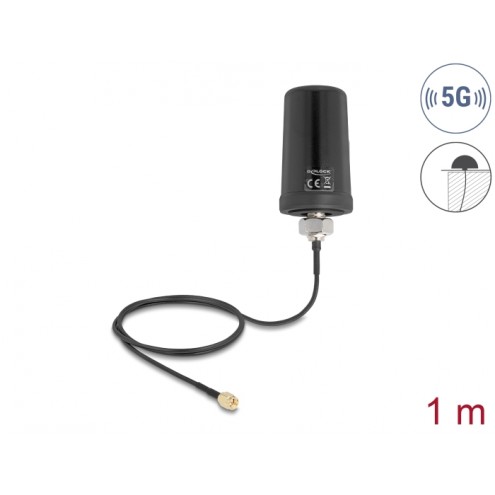 Delock 5G LTE GNSS WiFi 6 Antenna SMA plug 1.1 - 4.0 dBi omnidirectional with connection cable ULA100 1 m roof mounting outdoor