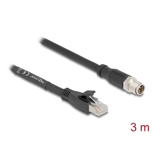Delock M12 Cable X-coded 8 pin male to RJ45 plug Cat.5e S/FTP flexible 3 m black