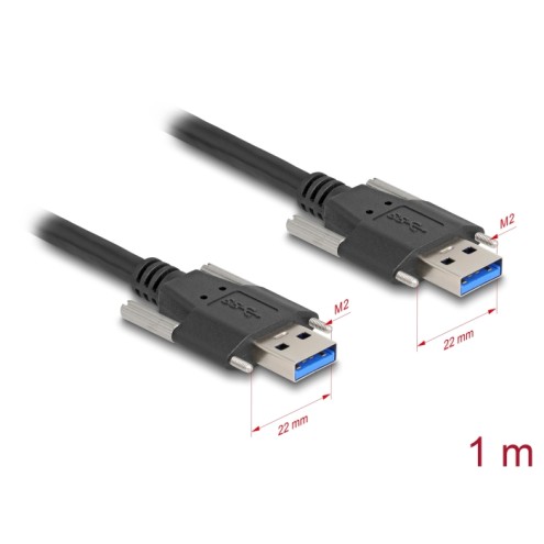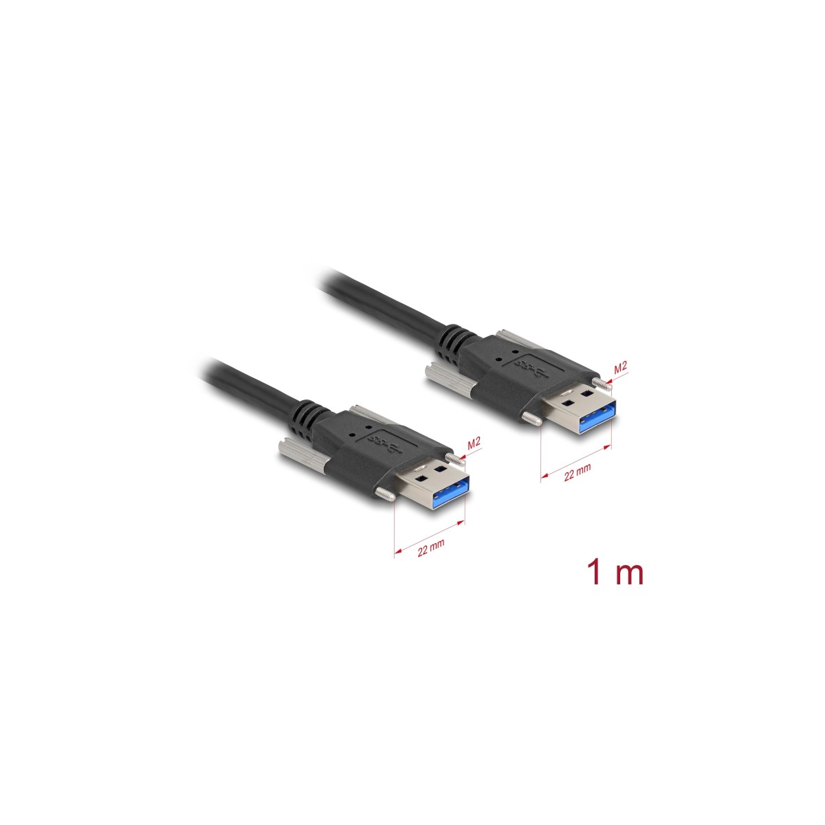 Delock USB 5 Gbps Cable Type-A male to Type-A male with screw distance 22 mm 1 m black