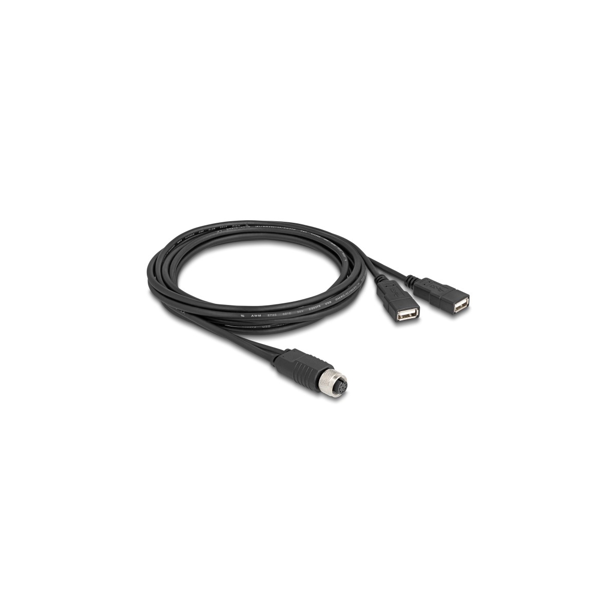 Delock M12 Cable A-coded 8 pin female to 2 x USB 2.0 Type-A female 2 m black