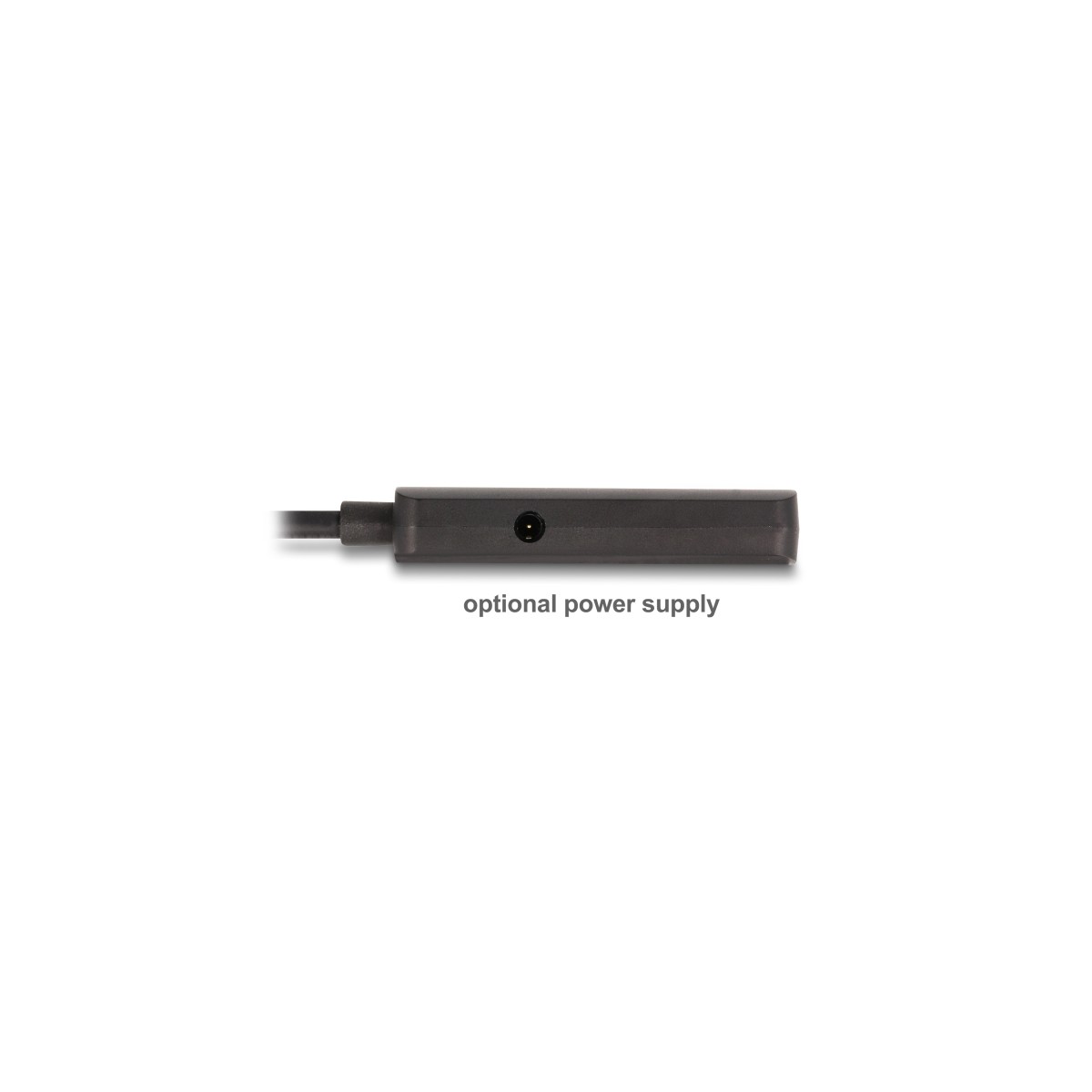 This active USB cable by Delock can be used to extend a USB connection by 5 m. The cable has an additional DC power socket to which an optional power supply can be connected. This ensures optimum data transmission even when used with powerful devices such as a 2.5″ hard drive.