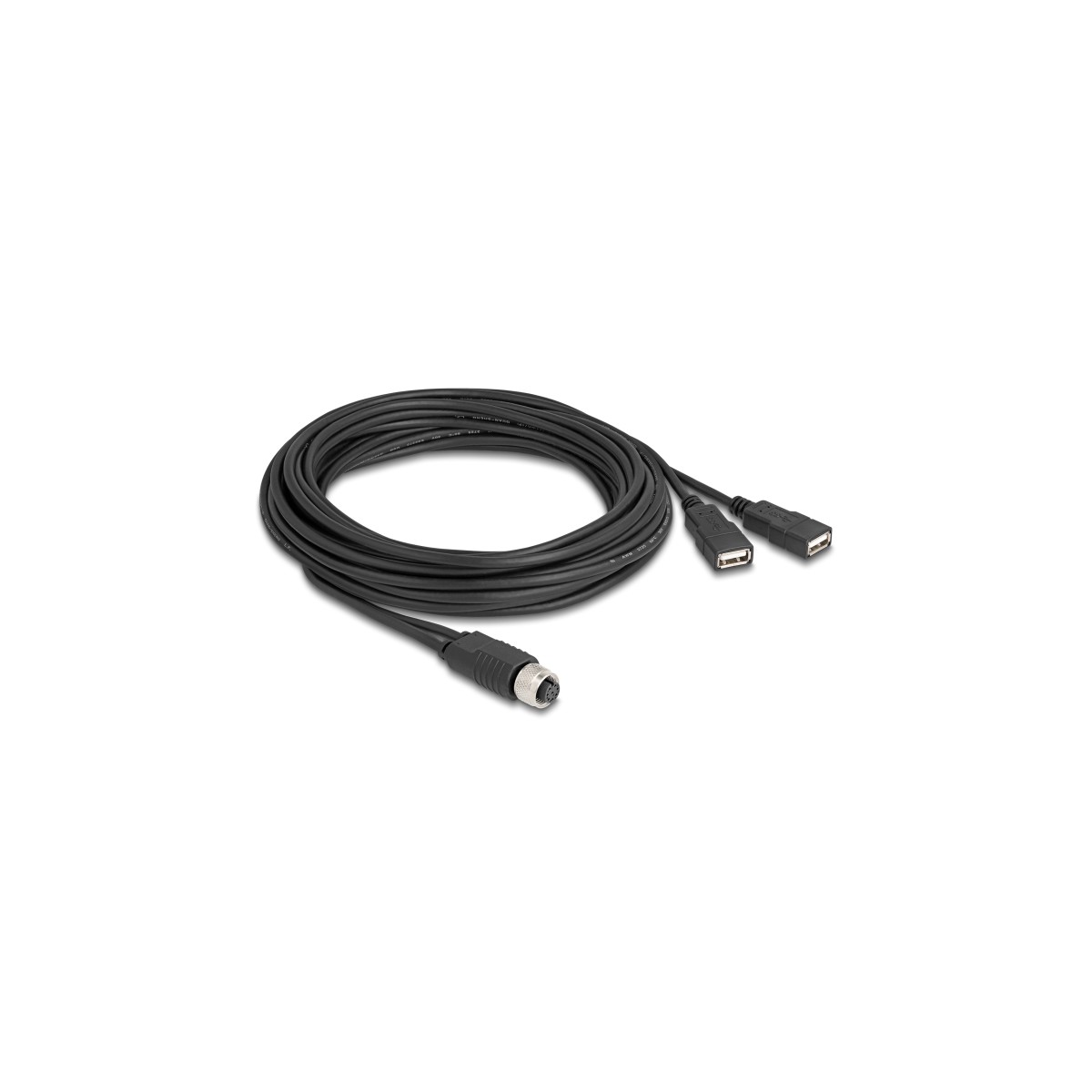 Delock M12 Cable A-coded 8 pin female to 2 x USB 2.0 Type-A female 5 m black