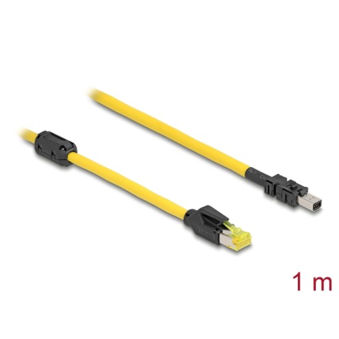 This cable by Delock can be used to connect devices with an RJ45 connection and devices that use a mini I/O connector in D-shape. It is often found in industrial automation applications and is suitable for e.g. machines or control systems.