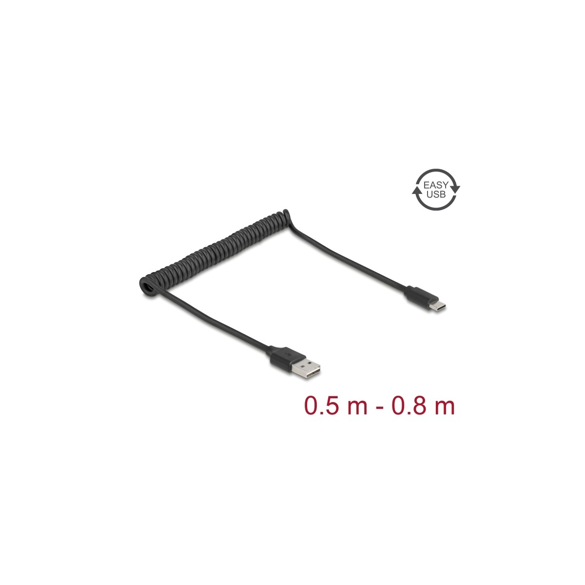 Delock Coiled Cable EASY-USB 2.0 Type-A male to USB Type-C™ male 0.5 m to 0.8 m black
