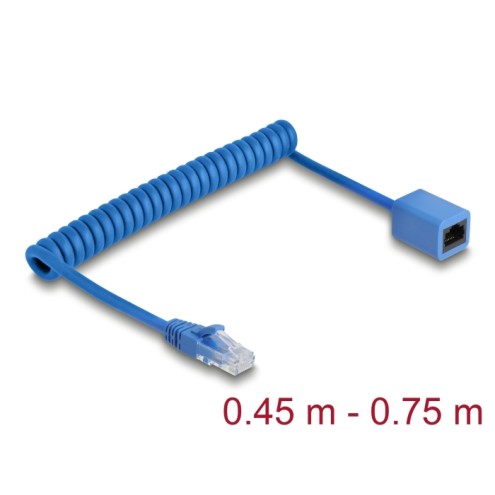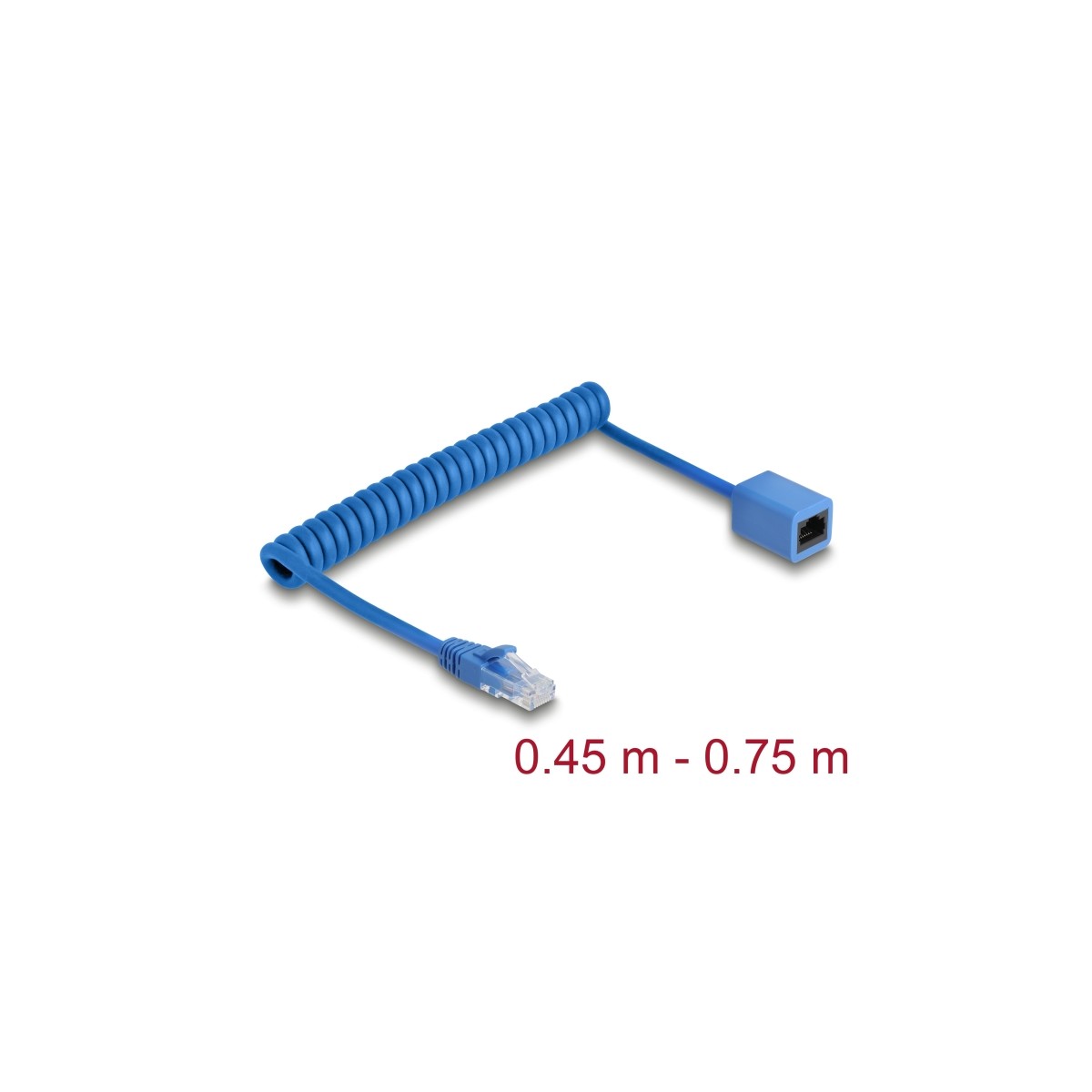 Delock RJ45 Coiled Cable plug to jack Cat.6 UTP 0.45 m to 0.75 m blue