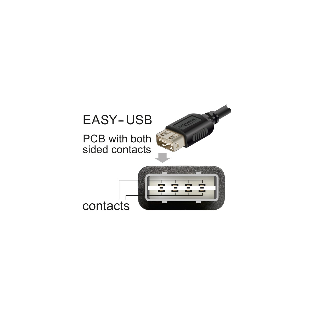 The EASY USB socket is twist-proof and can be used on both sides, so there is no need to pay attention to the correct top or bottom side when inserting a plug.