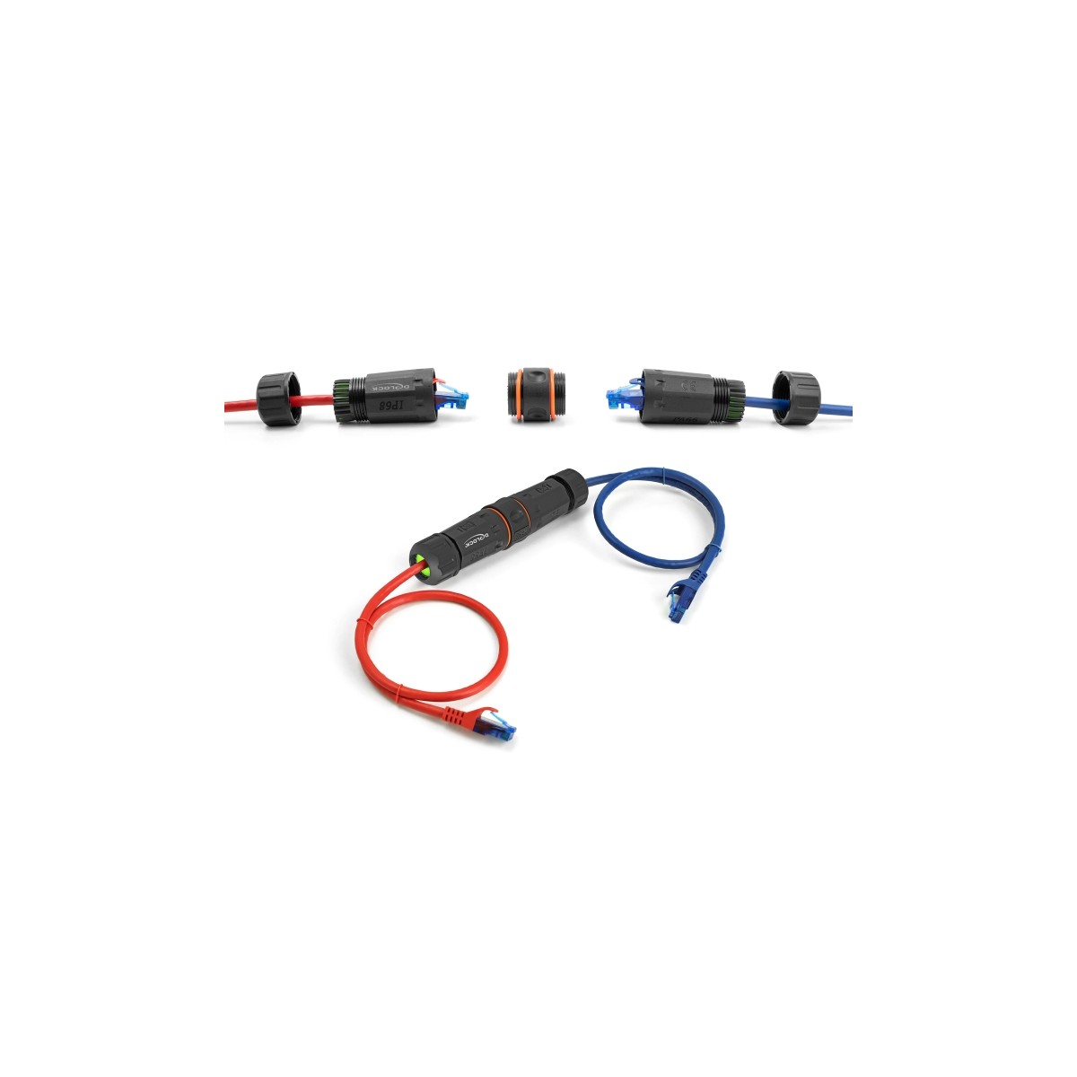 This cable connector by Delock connect RJ45 network cables and is ideal for outdoor use e.g. in the garden.