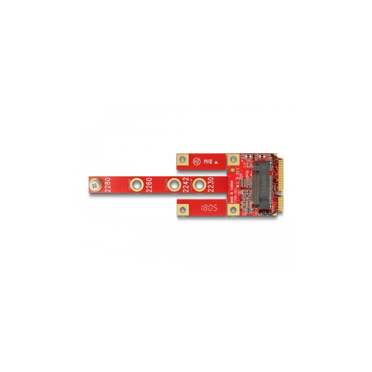 This converter by Delock enables the connection of an M.2 module in 2280, 2260, 2242, 2230, 3042 or 3030 format. The converter can be installed into the system through a Mini PCIe interface. At the predetermined breaking points, the length can be shortened. The converter supports modules with SATA, USB or PCIe (x1) signal transfer. Further there is the possibility to insert a Micro SIM card in the slot and use with an appropriate M.2 module.