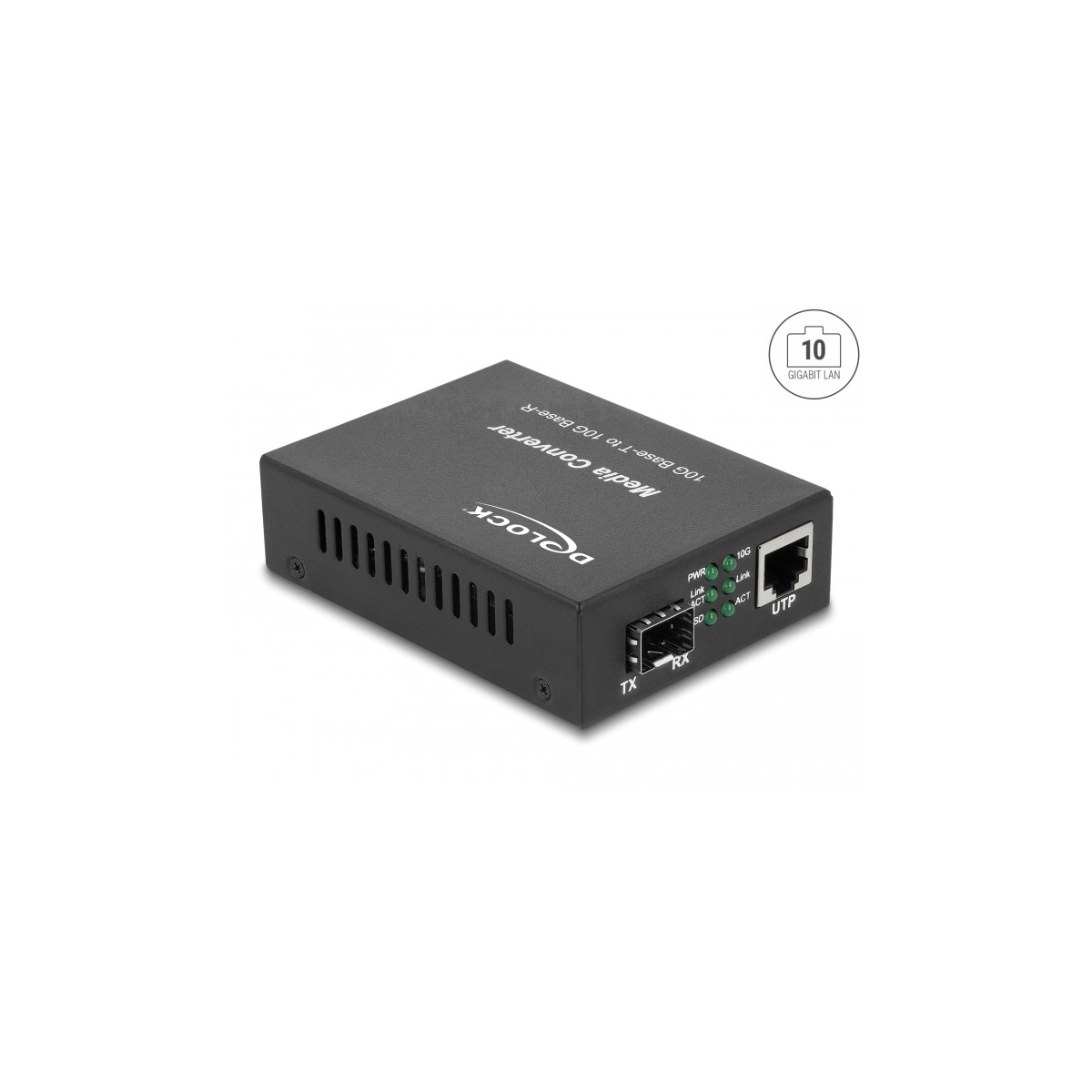 This 10 Gigabit Ethernet Media converter by Delock can be used to connect different media. In the SFP slot, various optional SFP+ modules up to 10 Gbps can be used.