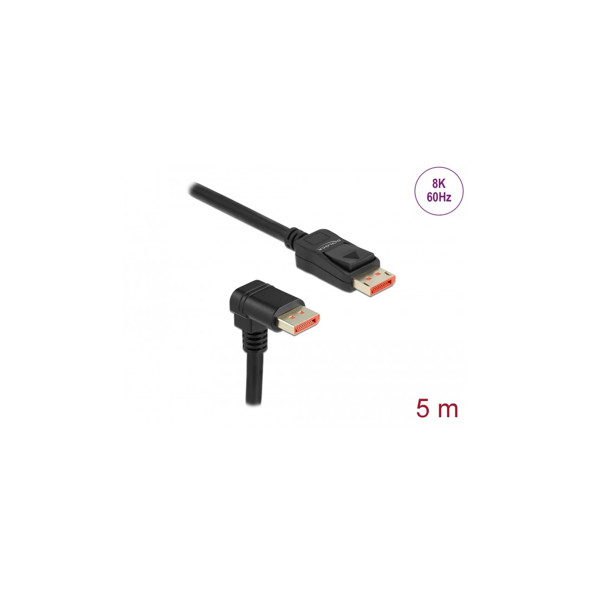 Delock DisplayPort cable male straight to male 90° downwards angled 8K 60 Hz 5 m