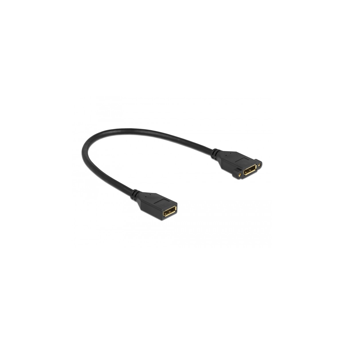 This cable by Delock can be used to extend a DisplayPort connection and to connect various devices. The female port can be attached with two screws, e.g. to a slot bracket, a cable duct or an enclosure with the corresponding opening. In this way, it is possible to install a DisplayPort connector in an easily accessible position.