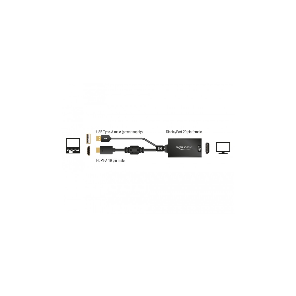 Delock Adapter HDMI-A male > DisplayPort 1.2 female black