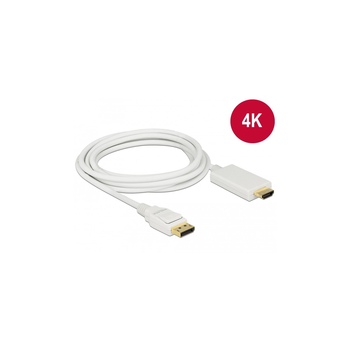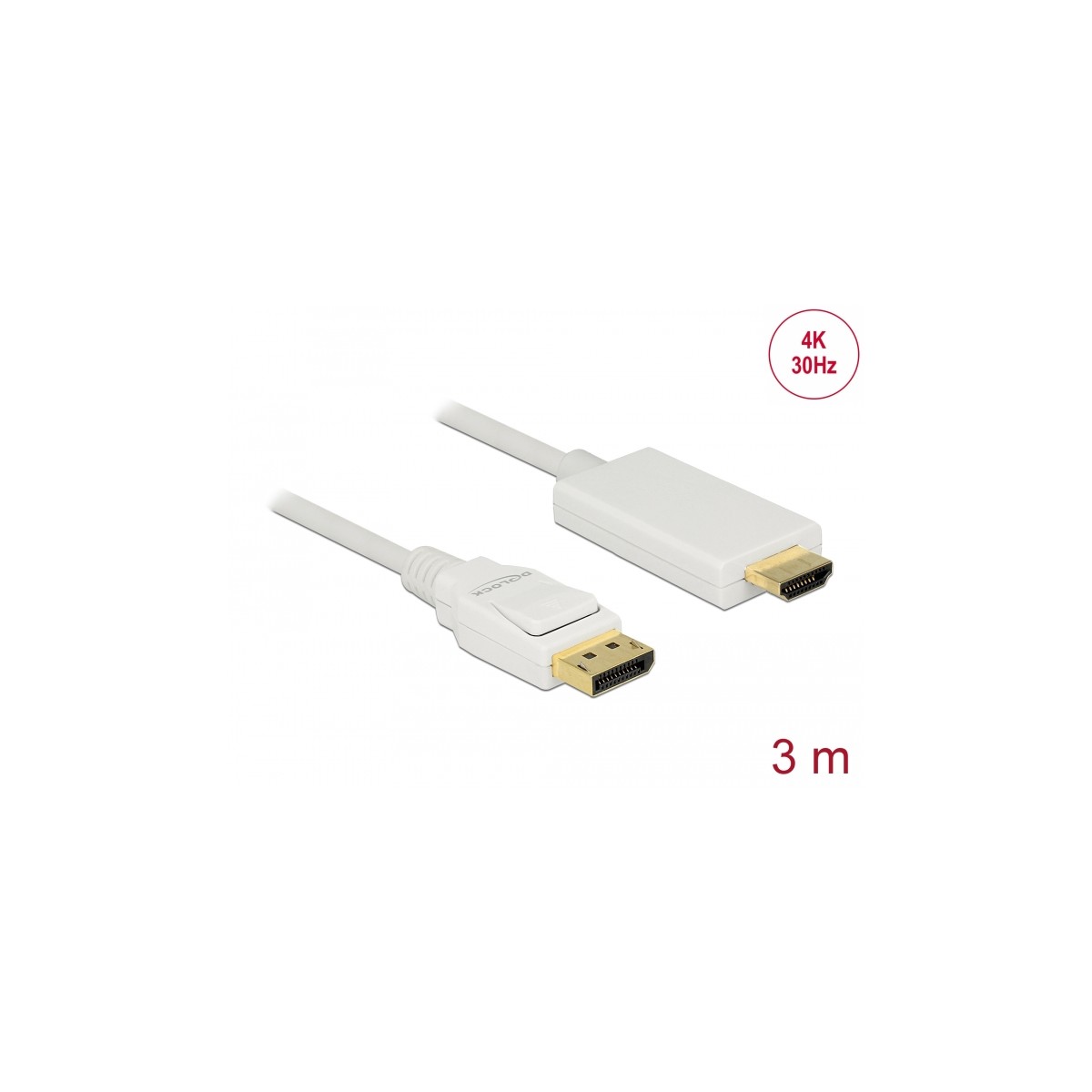 Delock Cable DisplayPort 1.2 male > High Speed HDMI-A male passive 4K 30 Hz 3 m white