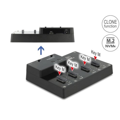 Delock M.2 Docking Station for 4 x M.2 NVMe PCIe SSD with Clone function