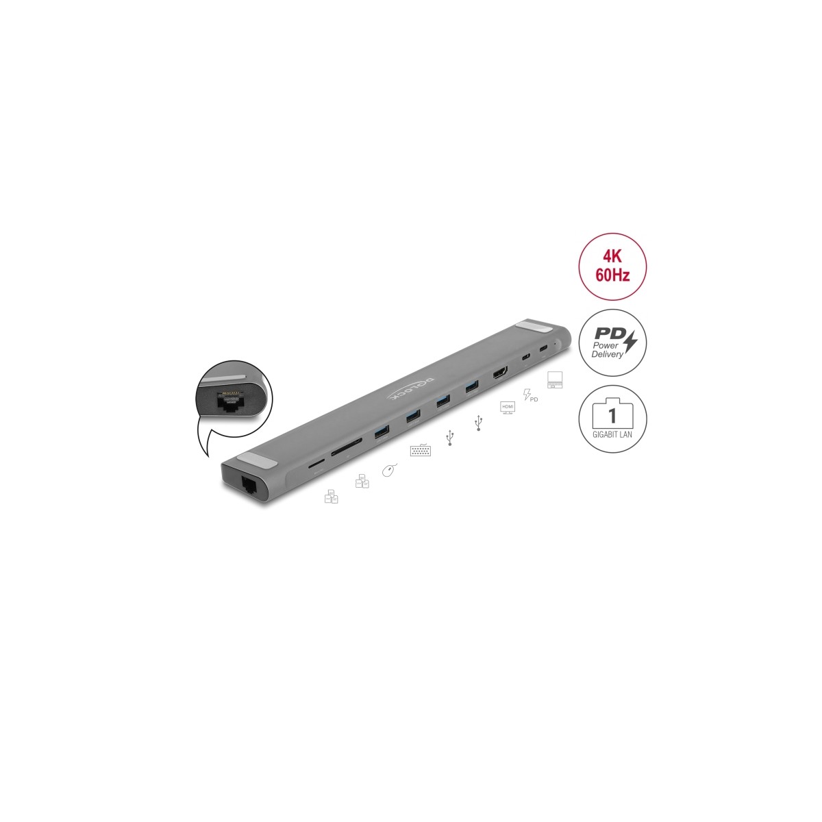 Delock USB Type-C™ Slim Docking Station 4K - HDMI / USB 3.2 Gen 1 / LAN / SD / PD 3.0