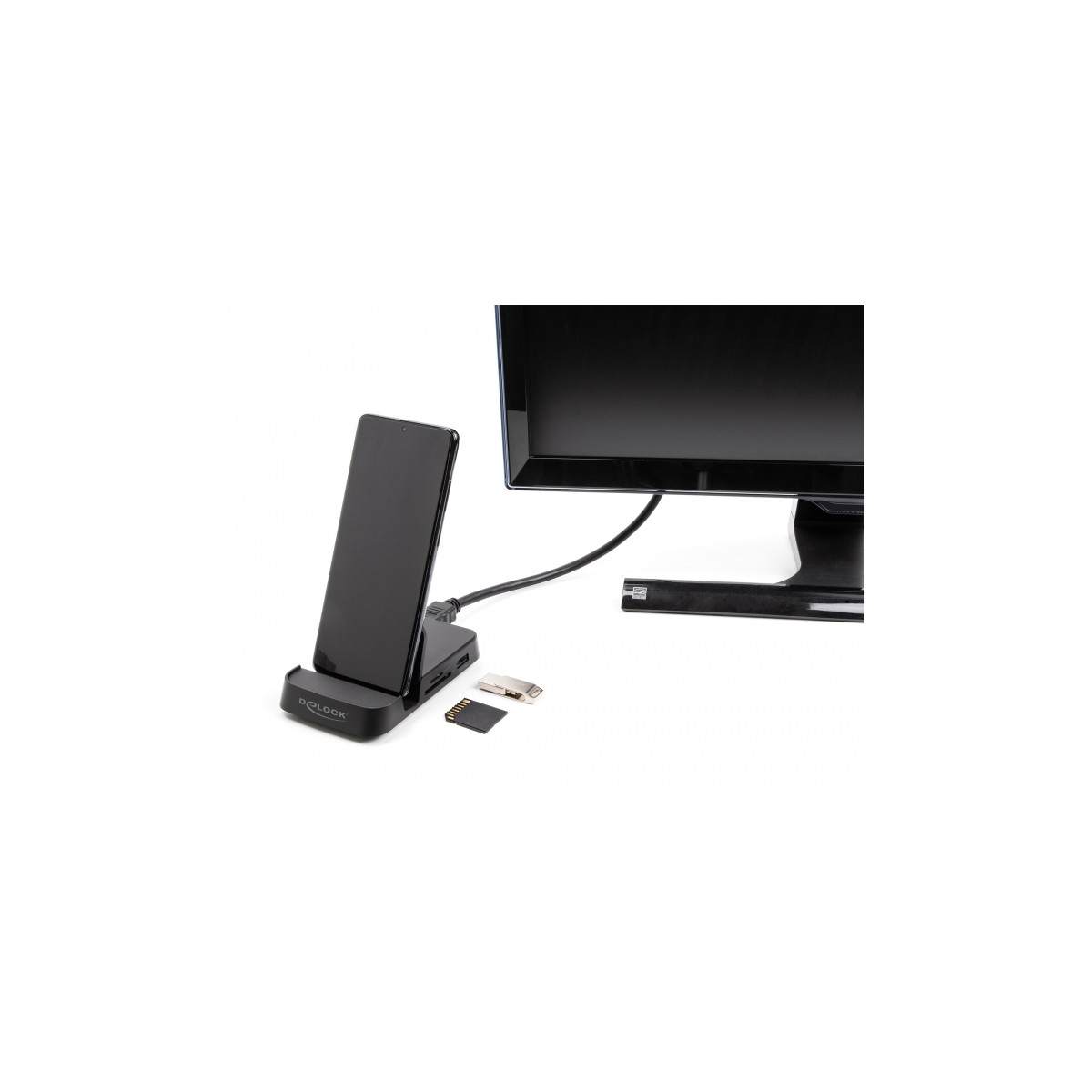 Delock Smartphone Docking Station 4K with integrated holder - HDMI / USB / Hub / SD / Micro SD for Android or Windows