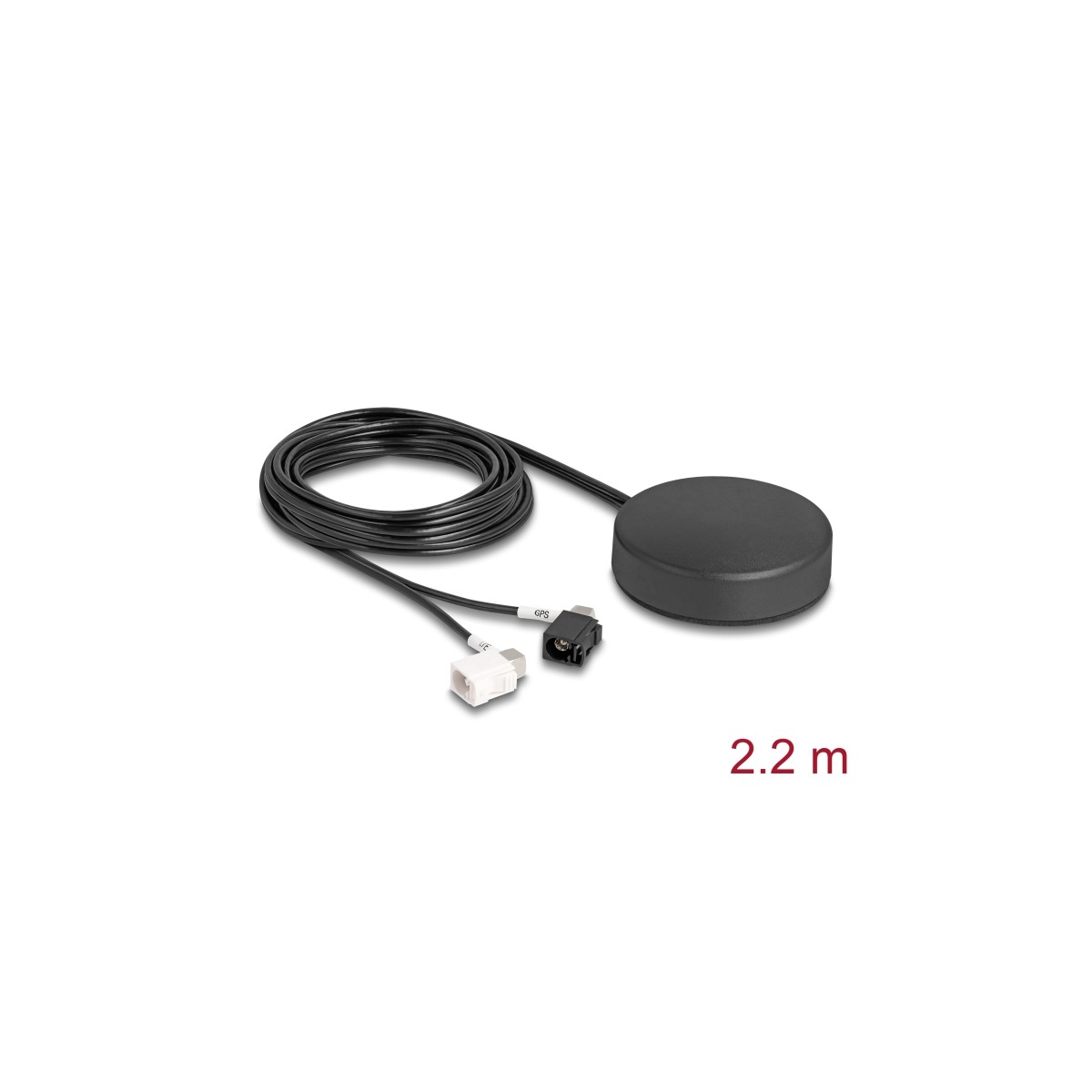 Delock 4G GNSS Antenna 1 x FAKRA A + 1 x FAKRA B jack 2 dBi / 28 dB 2.2 m RG-174 omnidirectional roof mount black outdoor