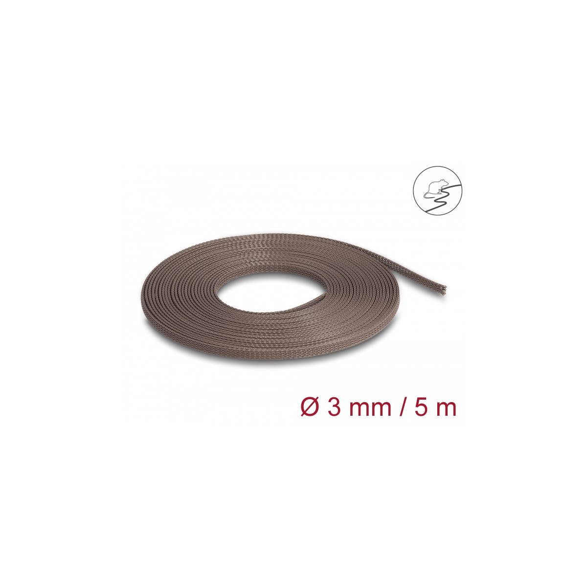 Delock Braided Sleeve rodent resistant stretchable 5 m x 3 mm brown