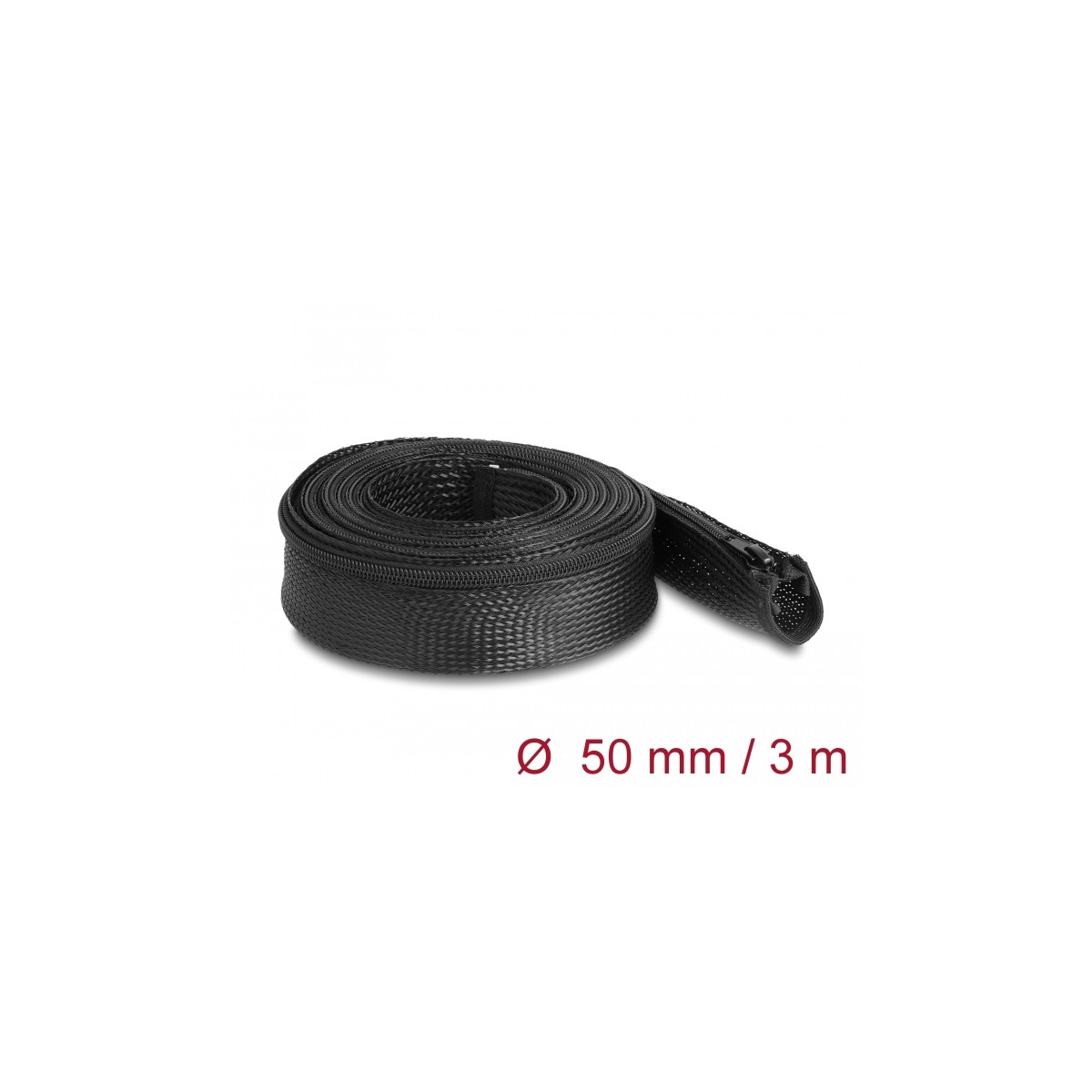 Delock Braided Sleeve with zip fastener heat-resistant 3 m x 50 mm black