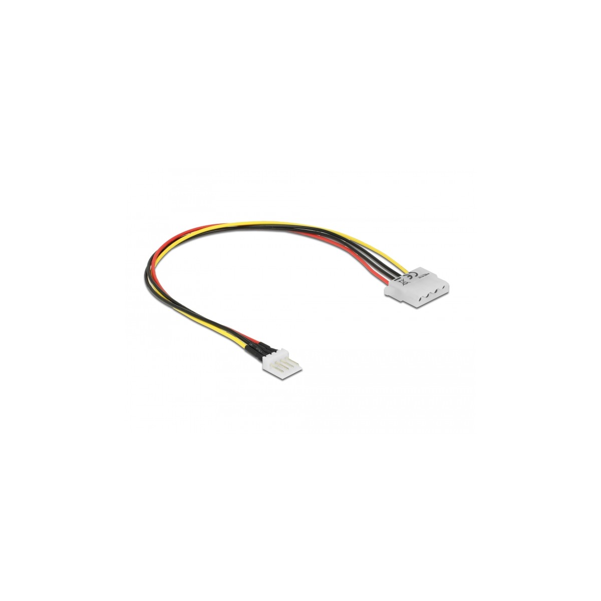 This cable by Delock enables the power supply of a device equipped with a Molex 4 pin receptacle over one free Floppy 4 pin power connector on the power supply.