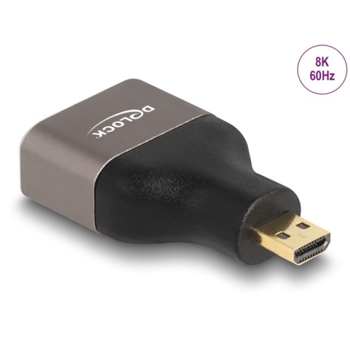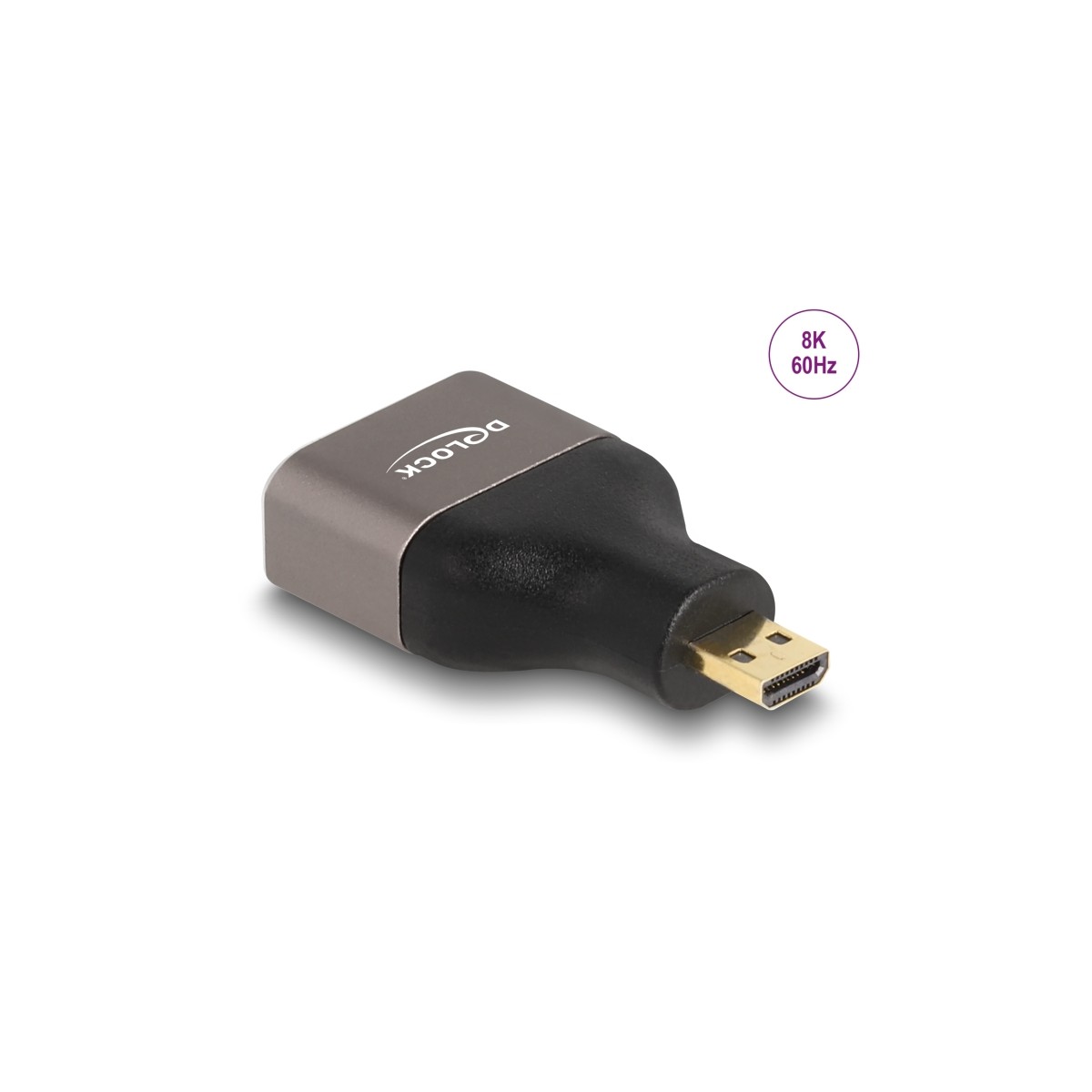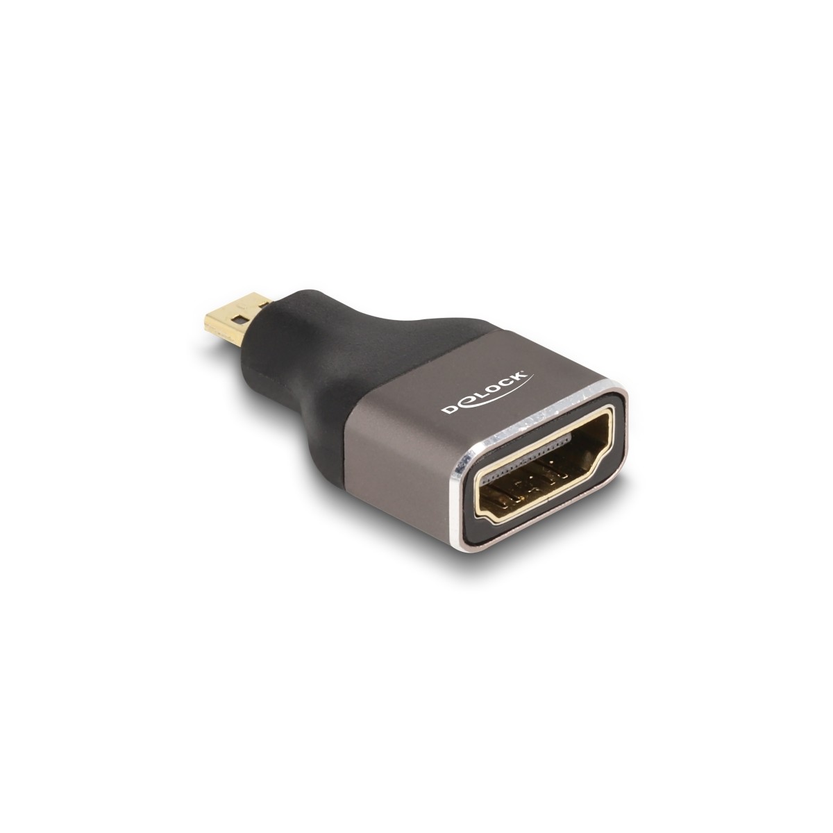 Delock HDMI Adapter Micro-D male to A female 8K 60 Hz grey metal