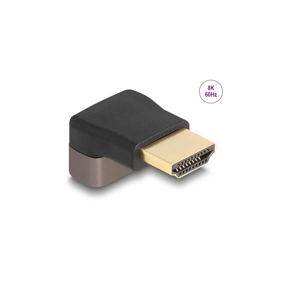 Delock HDMI Adapter male to female 90° upwards angled 8K 60 Hz grey metal