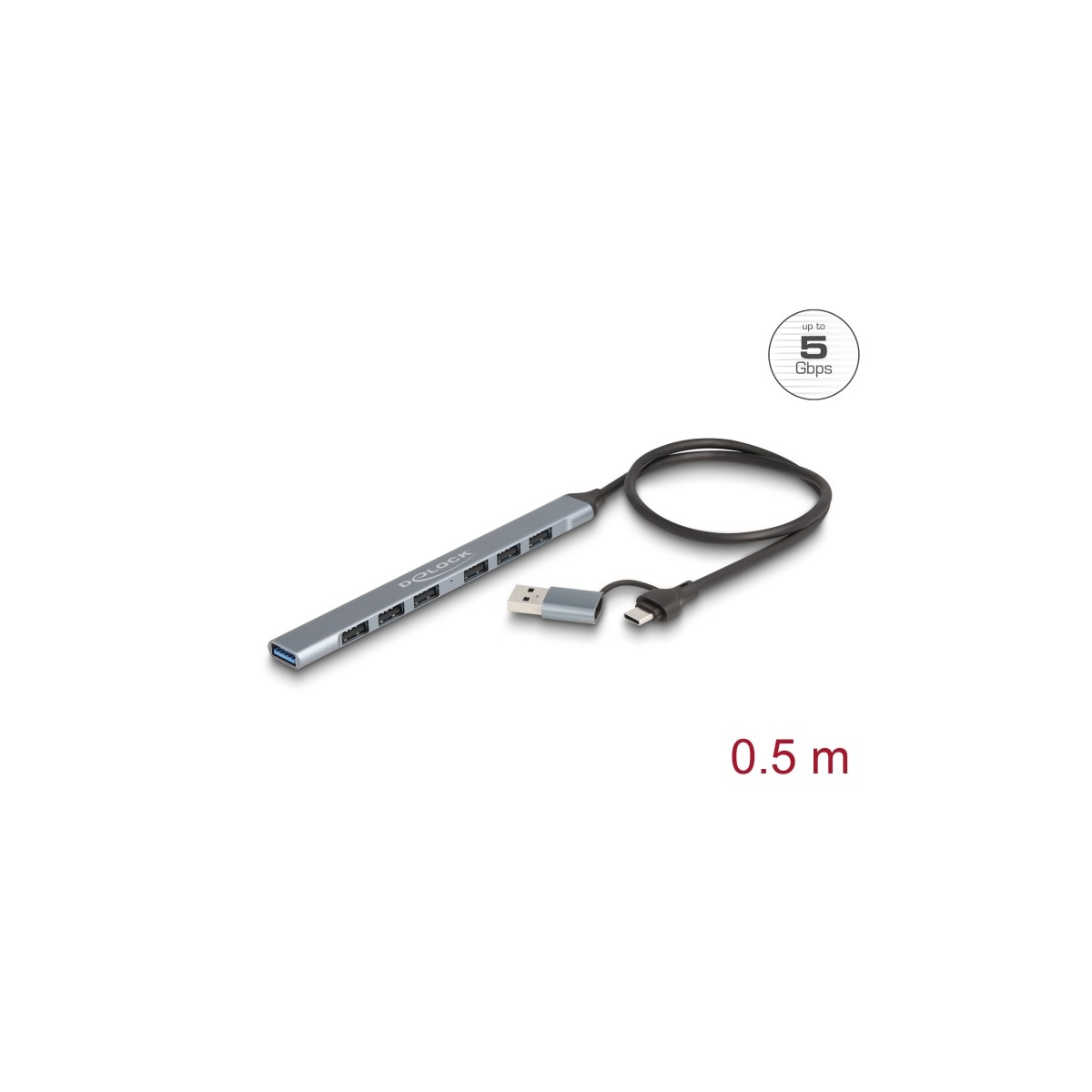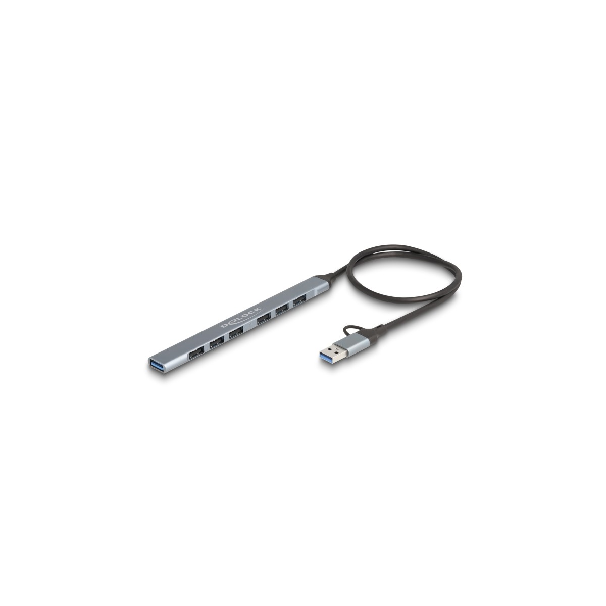 Delock 7 Port Slim USB Hub with USB Type-C™ or USB Type-A to 1 x USB 5 Gbps Type-A + 6 x USB 2.0 Type-A